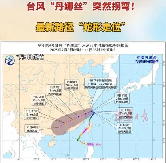 最近,今年第4號臺風“丹娜絲”的路徑讓不少人大呼“看不懂”——它先在臺灣嘉義縣登陸,隨后不按常理向東北行進,反而來了個**大角度轉彎**,扭頭向西,直沖浙江臺州到福建寧德沿海,走出了一條明顯的“蛇形”軌跡。為什么臺風會像蛇一樣“扭來扭去”?它到底聽誰指揮?