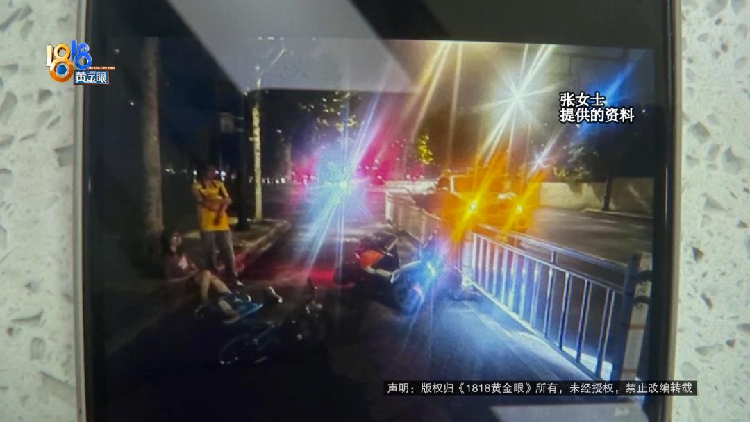 張女士:我就大概停在這樣的位置,我自行車這樣下來,我就這樣停了幾秒種,我就把手機放上來。這個時候那個車,就直接直筆筆地朝我撞過來了。他也沒有減速,也沒有繞道,他其實完全可以避開的,他直接撞在我人身上,我直接就這樣被他撞倒以后,整個人跟車都倒在地上。