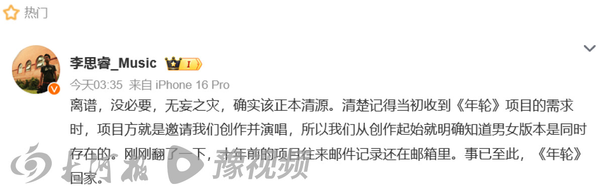 面對爭議,7月25日0:05,汪蘇瀧方發文稱:“在《年輪》發行十年之時,我們決定收回《年輪》授權,暫不授權該作品做任何演唱。”2小時后,張碧晨工作室發微博告別《年輪》,強調“張碧晨女士作為該作品唯一原唱”,并貼出相關證明材料和時間線。