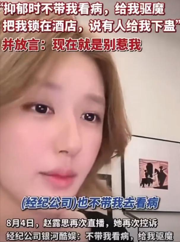 趙露思稱公司沒有及時(shí)去處理劇組矛盾,送趙露思去醫(yī)院,反而將趙露思鎖到酒店里“驅(qū)魔”,并聲稱有人對(duì)趙露思“下蠱”了。