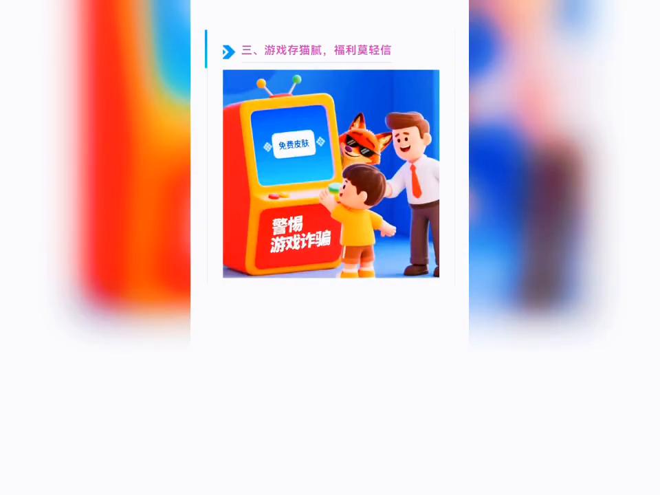 ·2.抽獎活動陷阱。參與網上"抽獎"免費領中毒,通訊錄、聊天記錄等個人隱私信息告知家長或老師,并聯(lián)系游戲官方客服核實。不法分子常偽裝成"學長學姐"、"新同學"接電話,用"過來人"身份分享。