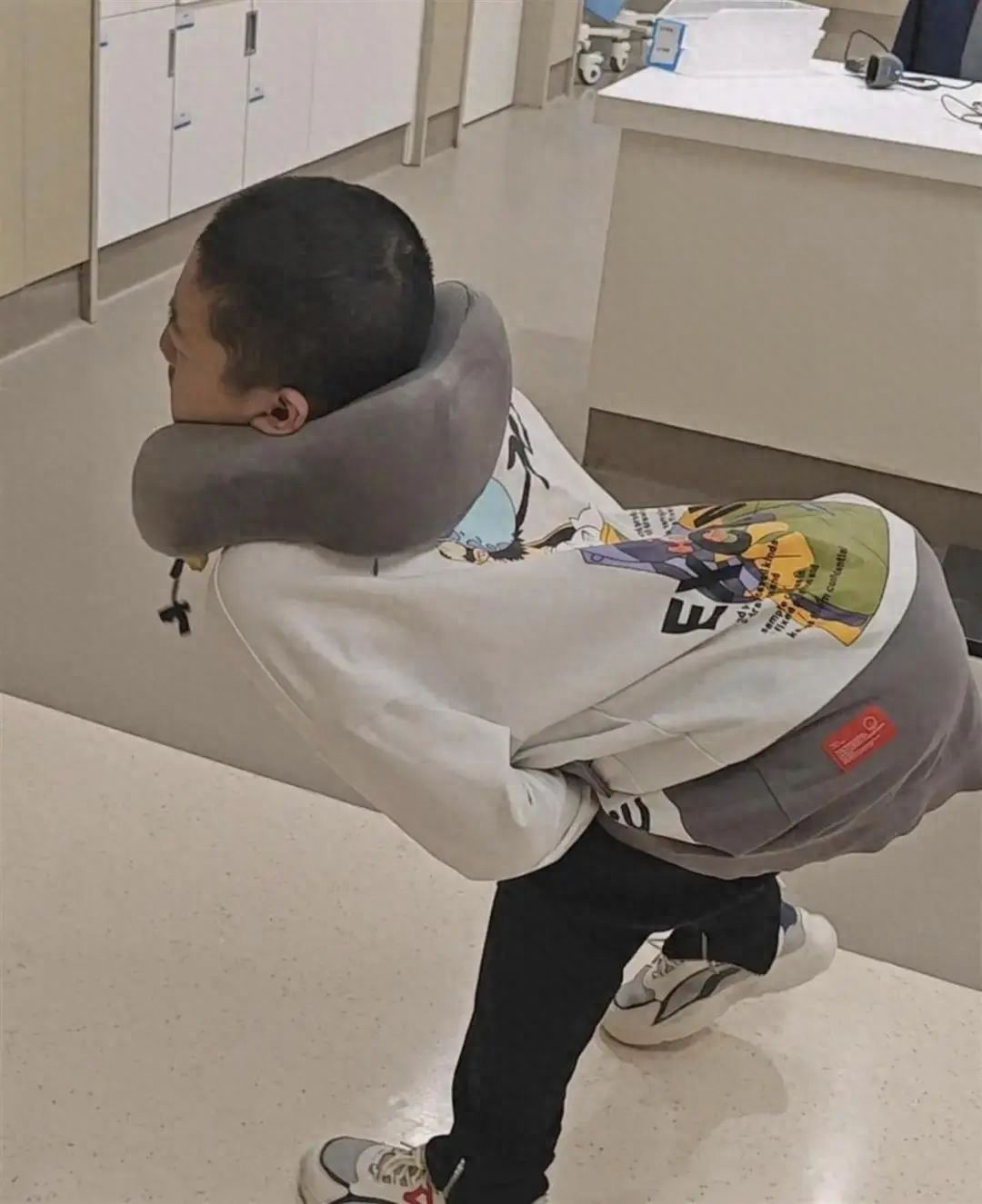 起初,他后仰的頭還能被人輕輕扶正,后來脖子逐漸發(fā)硬;初三時,脖子折疊貼到后背;再往后,身體逐漸成了 “Z形” 畸形,頭和脊柱之間僅有一只手厚度的間隙。