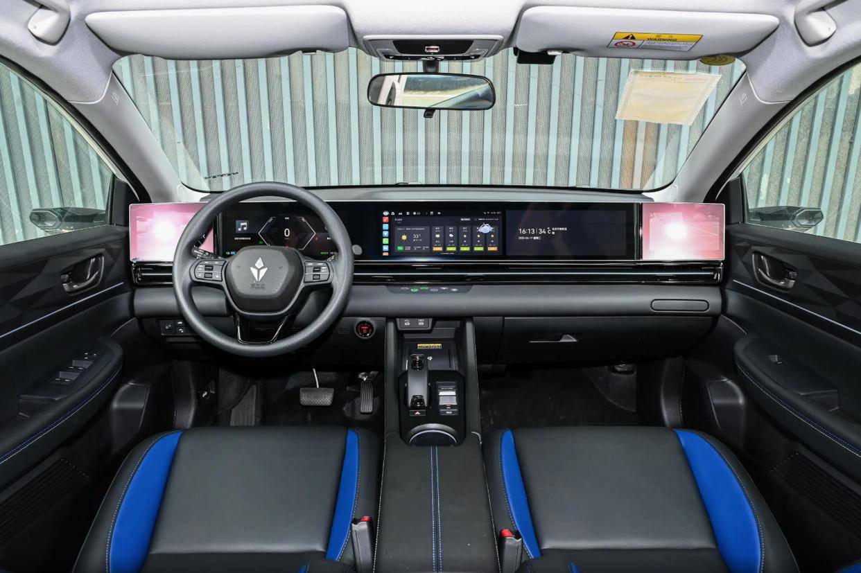 至于內飾設計,采用了5塊貫穿樣式大屏設計,其中兩側屬于電子外后視鏡版本,需要進行選裝。除此之外,行車電腦,中控屏以及副駕駛娛樂屏幕一應俱全。雖然是一款新能源汽車,但是廠家也貼心地安排了機械擋把設計,這是用來模擬操控屬性。此外,全景大天窗,雙拼色的座椅也是一應俱全,亮點很多