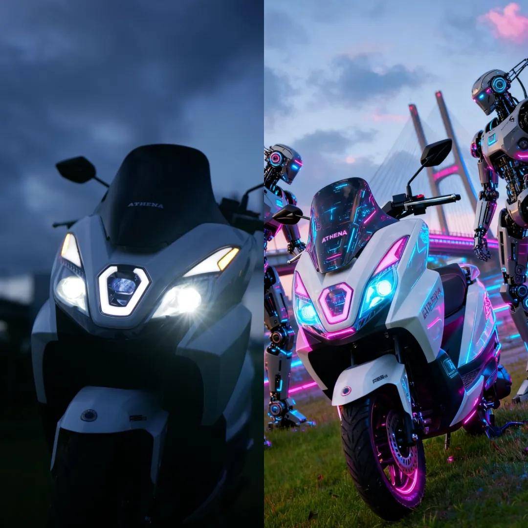 另外,財好150的日行燈是自動循環變色的,左右是雙透鏡大燈,而UFR150是左右反光碗大燈。這個變色是7色循環變色的,夜間騎行一定很拉風,這也是雅典娜的一個巧思。