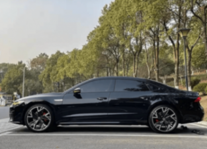 我比較喜歡這款車的車身,優雅動感,車頂弧線勾勒的富有空氣動力學,后備箱蓋也是掀背式的設計,加上熏黑處理的鋁合金輪轂、紅色卡鉗,有種黑武士的既視感。再加上微微翹起的鴨尾尾翼、鯊魚鰭天線、貫穿式尾燈,進一步營造出運動的一面。