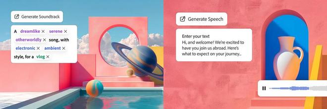 除此之外,F(xiàn)irefly還新增了視頻生成編輯工具與生成語(yǔ)音和配樂(lè)的音頻功能。