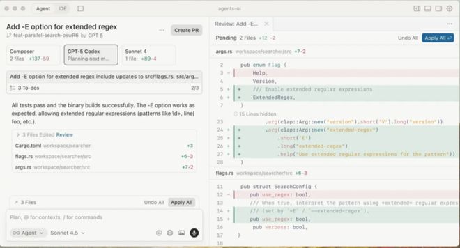 全新界面邏輯:從「以文件為中心」切換為「以Agent為中心」,多個Agent可以同時運行、互不干擾。